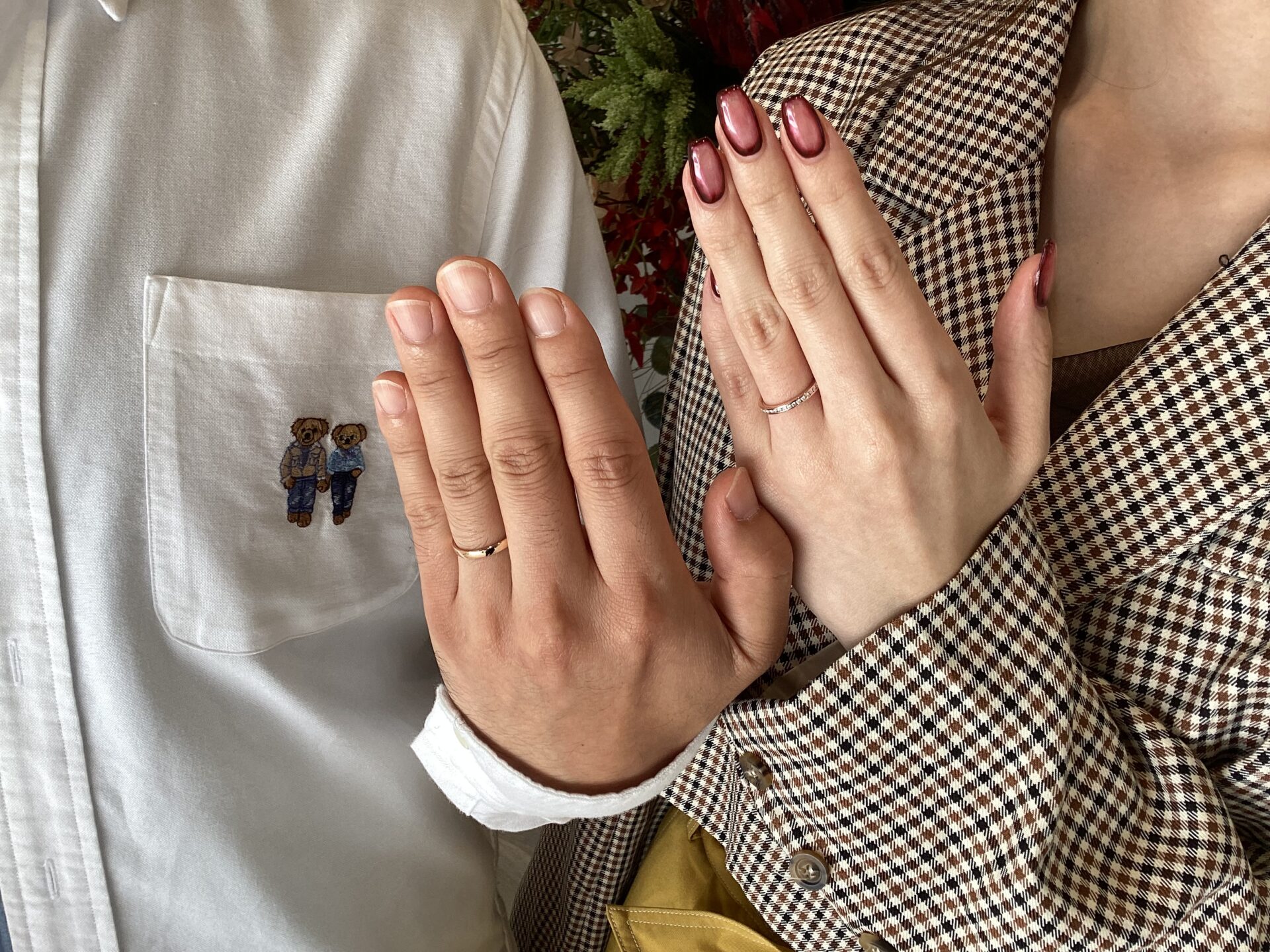 私たちは自分の気に入ったものを選んだ結果、別のブランドにしました。 お互いを尊重したうえで、必ずペアじゃなくても良いと思います。