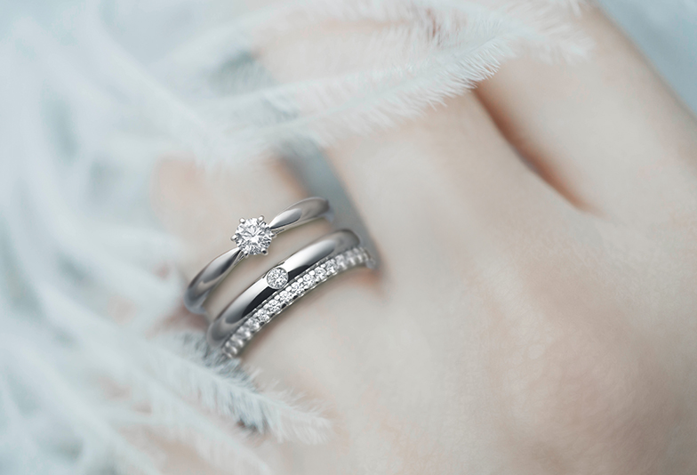 婚約指輪と結婚指輪を重ねることで、手元に自然な立体感が生まれます。