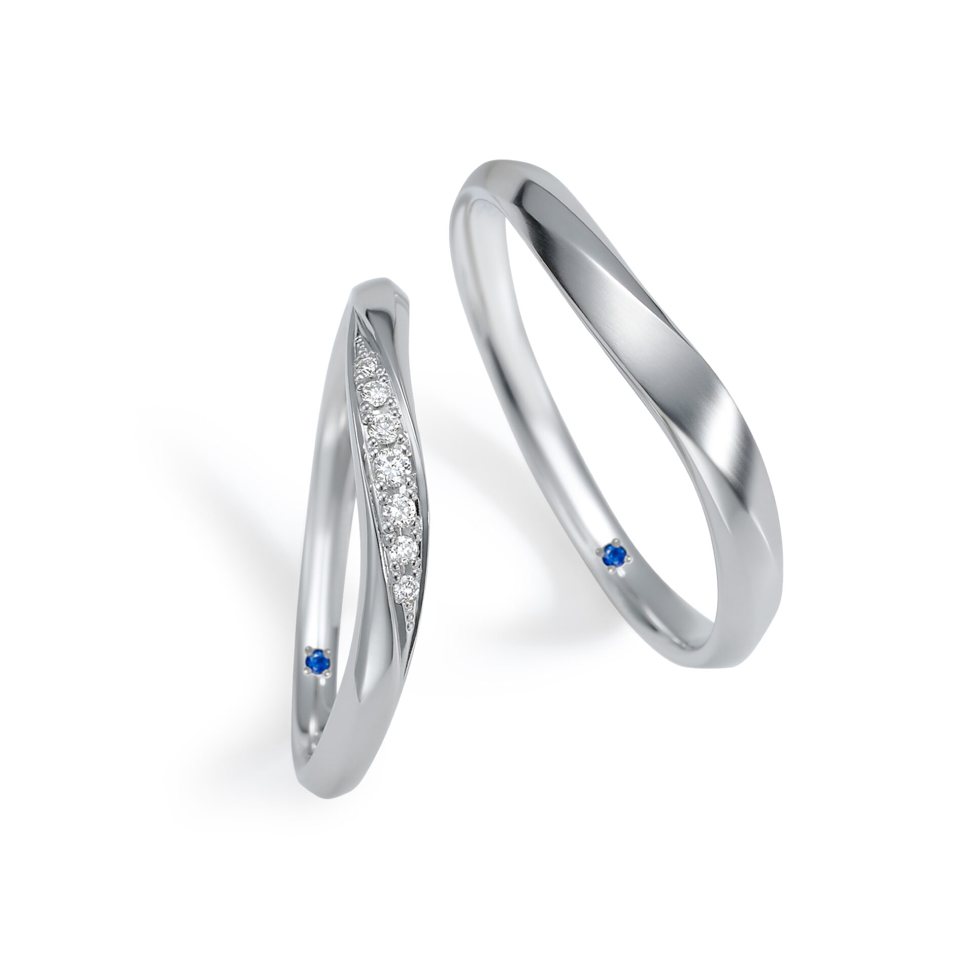 まるで新しい風がふっと吹き抜けるような心地よさ 柔らかいひねりを効かせたSラインフォルムはリング全体を優しく煌めかせます これからの2人の歩む人生が輝きますように、明るい未来を願って